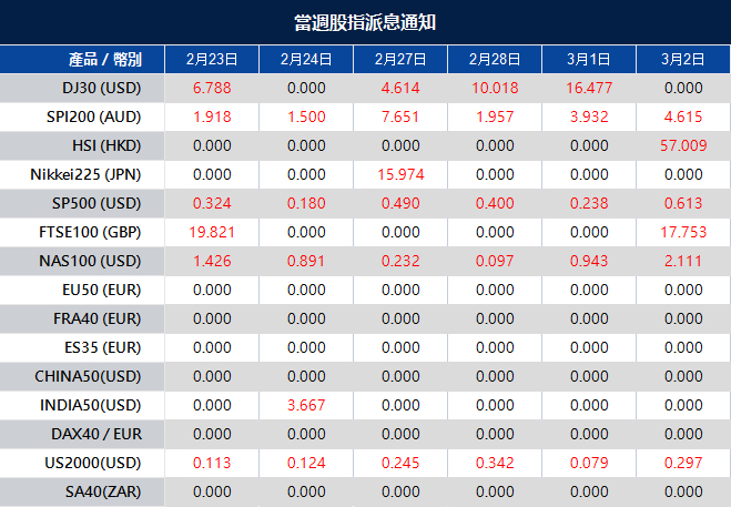 當週股指派息通知