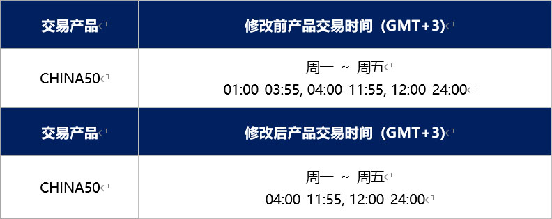 為提供更好的交易環境與因應市場變化,VT Markets 將於2023年9月18日調整 CHINA50 產品的交易時間。