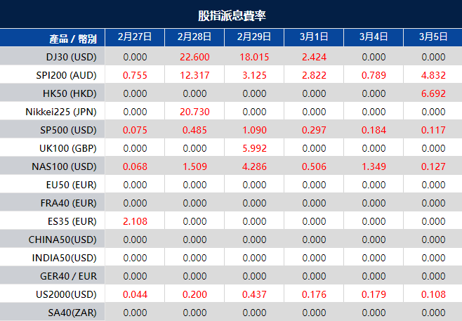 VT Markets 當周 (02月27 至 03月05日)隔夜倉息變化因此受到影響,具體調整內容如下: