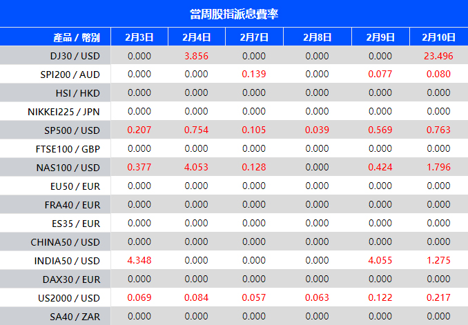 尊敬的用戶: 您好! 溫馨提醒您,在股指現貨中的成分股產生股利,分紅時,VT Markets 將於派息日前一天收盤後,對持有該股指產品的賬戶進行派息的費用扣補。 請務必留意,目前派息調整(Dividend)已「不再」與 持倉利率(Overnight Financing)合並計算在調期庫存費率(Swap)中。完成派息後,投資者可在賬戶歷史中查看到包含有以下注釋「Div & 股指名稱 & 凈手數 」的資金扣補記錄,即為派息調整,其中多單手數以「正值」計算,空單手數以「負值」計算,兩者相加即為「凈手數」。 VT Markets 股指產品隔夜倉息變化具體調整內容如下: 注意:以上數據僅供參考,實際執行數據有可能會有變動,具體請依據 MT4/MT5 軟件為準。 如您有任何疑問,我們的團隊將十分樂意為您解答。請留言或發郵件至 …