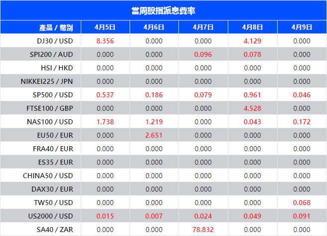 VT Markets 當周(4月5日 至 4月9日)隔夜倉息變化因此受到影響,具體調整內容如下: