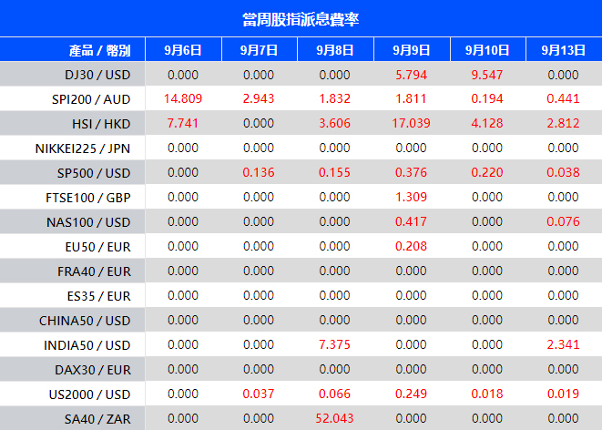 VT Markets 當周(9月06日 至 9月13日)隔夜倉息變化因此受到影響,具體調整內容如下: