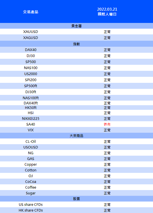 受到3月國際節假日影響,VT Markets 部分產品交易時間將有所調整,詳情請查看如下: