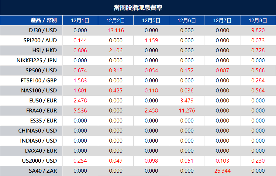溫馨提醒您,在股指現貨中的成分股產生股利,分紅時,VT Markets 將於派息日前一天收盤後,對持有該股指產品的賬戶進行派息的費用扣補。