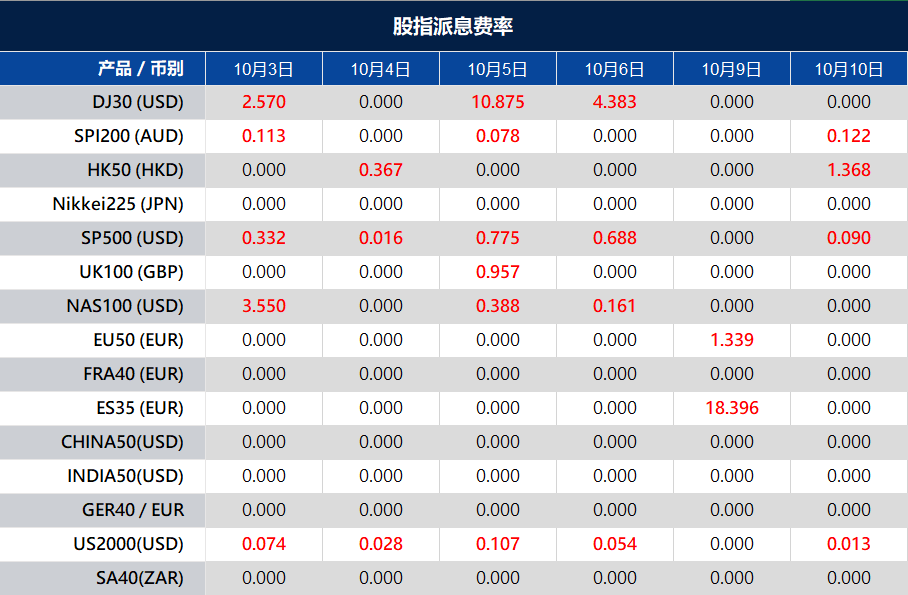 VT Markets 當周 (10月03日 至 10月10日)隔夜倉息變化因此受到影響,具體調整內容如下: