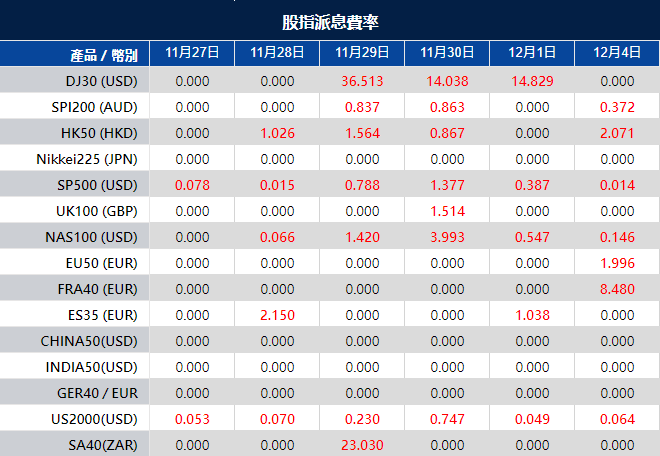VT Markets 當周 (11月27日 至 12月04日)隔夜倉息變化因此受到影響,具體調整內容如下: