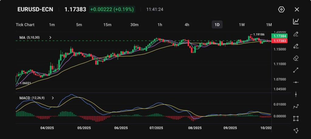 對於交易者而言,市場仍將維持區間波動。若持續突破1.1900 ,則可能釋放上行潛力,上探1.2050 ;若跌破1.1500 ,則可能跌向1.1300 支撐位。