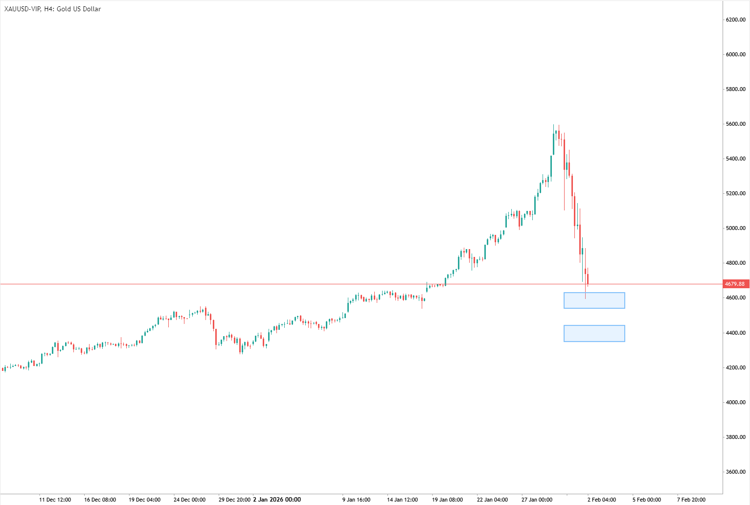 - 如果下跌勢頭延續,價格可能會跌至 4400 點附近。