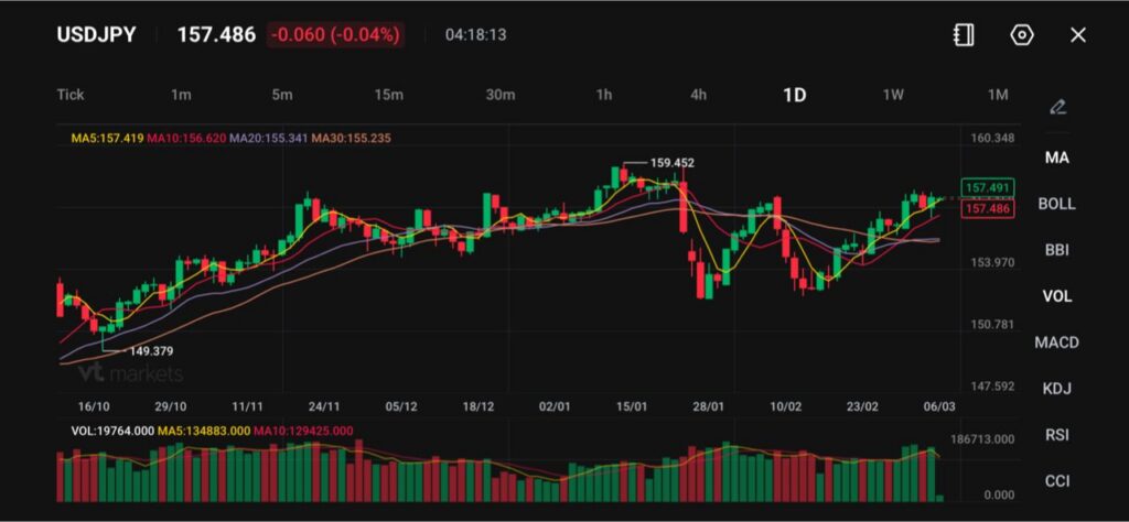 許多危機中,日圓會因避險需求而升值,但這次更多防禦性資金流向美元。地緣政治緊張時,投資人常轉進美國公債市場與美元流動性(更好買賣、較易換成現金)。因此即使市場氣氛脆弱,USDJPY 仍可維持在 1 美元兌 157.5 日圓附近。 - 油價上漲如何影響日圓?