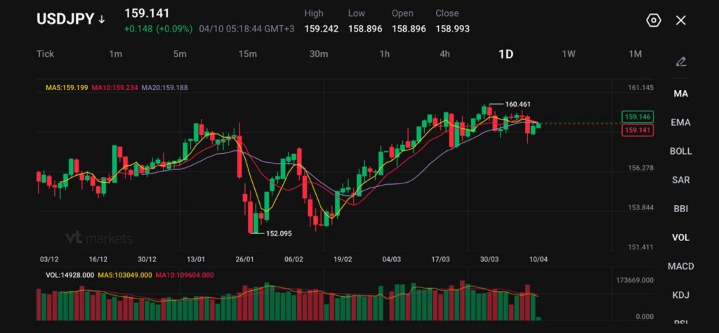 - 美元兌日圓(USDJPY)報 159.141,上漲 0.148(+0.09%),日內高點 159.242、低點 158.896。