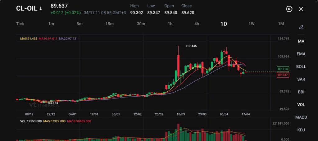 整體而言,CL-OIL 處於回調階段,偏空動能仍在;後續關鍵看 89.30 是否守住,或轉為續跌。