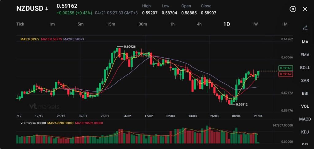 整體看,NZDUSD 出現趨勢可能轉向的早期跡象,3 月下跌後買盤開始進場。短期關鍵在於能否突破 0.5930確認延續上行,或遇阻後回到區間整理。