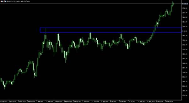 圖 2:黃金日線圖顯示 9 月突破歷史新高
