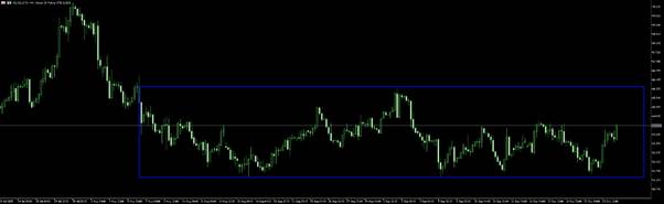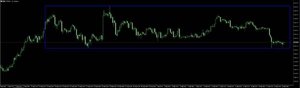 圖 3:4 小時油價圖顯示,截至 9 月,油價一直保持穩定的區間波動