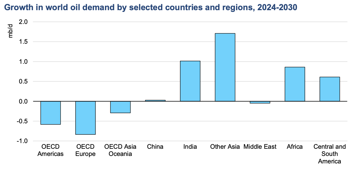 到2026年,全球石油需求將不再均衡或可預測。整體增速放緩,各地區增速不平衡。