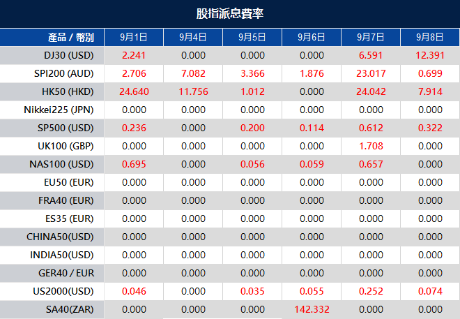 VT Markets 當周 (9月1日 至 9月8日)隔夜倉息變化因此受到影響,具體調整內容如下: