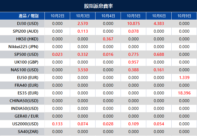 VT Markets 當周 (10月02日 至 10月09日)隔夜倉息變化因此受到影響,具體調整內容如下: