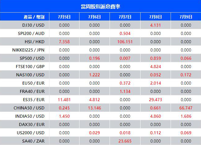 VT Markets 當周(7月05日 至 7月09日)隔夜倉息變化因此受到影響,具體調整內容如下: