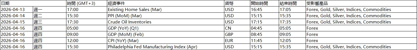 4. 受影響的經濟新聞和市場開盤/收盤時段