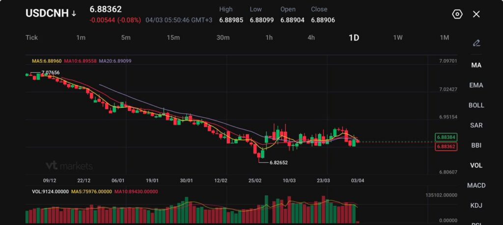 The offshore yuan edged higher on Friday, with USDCNH at 6.88362, as traders trimmed some of the safe-haven demand that had pushed the dollar higher through the Middle East crisis. The immediate shift came from improving sentiment around the Strait of Hormuz. Iran and Oman may begin monitoring transit through the waterway, which gave markets a reason to ease back from the most defensive positions.