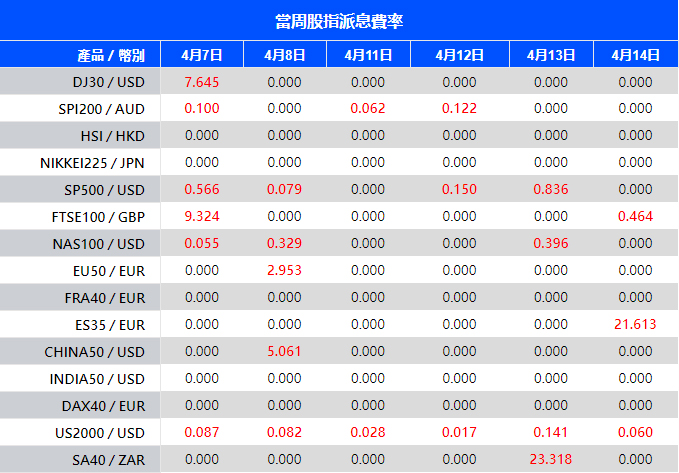 Warmly reminds you that the component stocks in the stock index spot generate dividends. When dividends are distributed, VT Markets will make dividends and deductions for the clients who hold the trading products after the close of the day before the ex-dividend date.