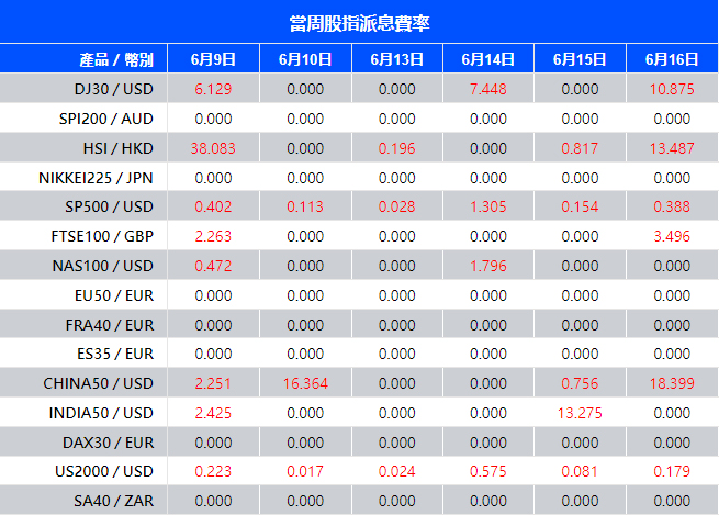 Warmly reminds you that the component stocks in the stock index spot generate dividends. When dividends are distributed, VT Markets will make dividends and deductions for the clients who hold the trading products after the close of the day before the ex-dividend date.