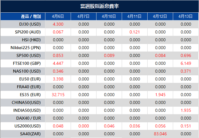 Please note that the dividends of the following products will be adjusted accordingly. Index dividends will be executed separately through a balance statement directly to your trading account, and the comment will be in the following format “Div & Product Name & Net Volume”.