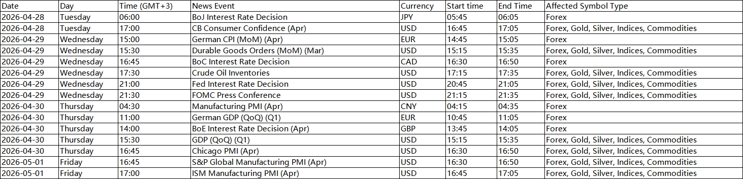 All dates and times are stated in GMT+3 (MT4/MT5 server time).