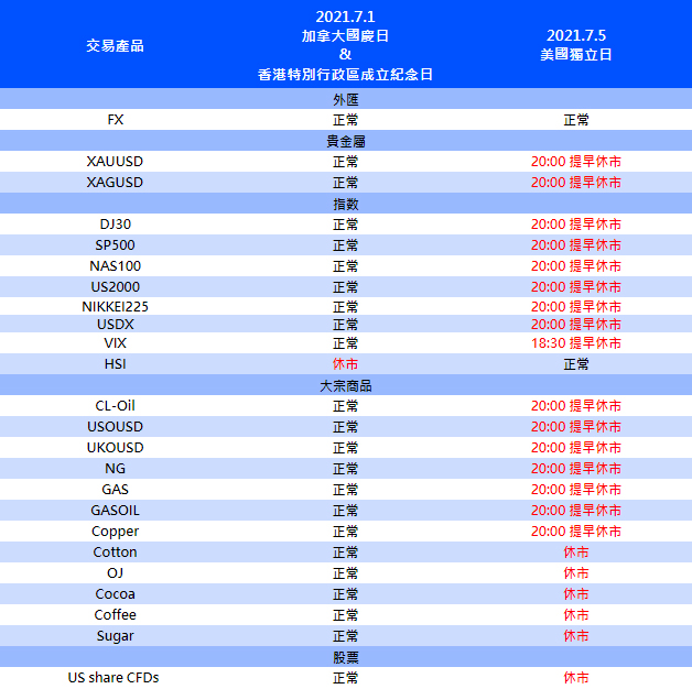 Please note that adjustment on following products due to Canada Day/HK special administrative region Day and US Independence Day.