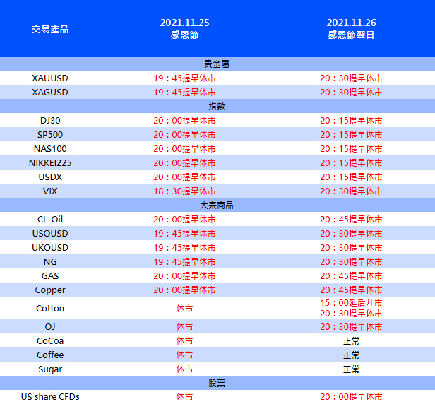 Please note that adjustment on following products due to Thanksgiving Day,and Day after Thanksgiving.