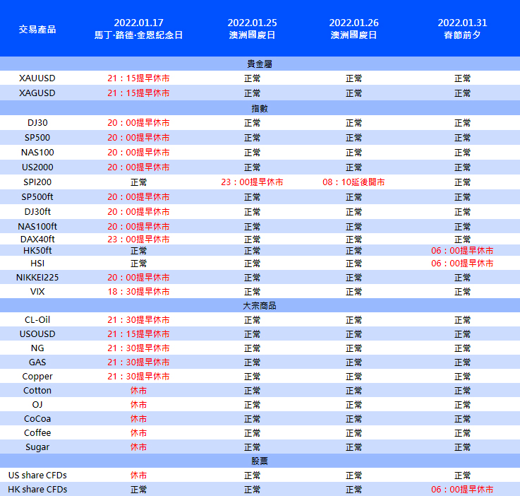 The above time is MT4/5 server time. The trading time of other products is not affected. The above data may be subject to change. Please refer to the actual time on MT4/5.