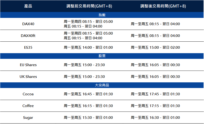 With the standard time commencing in the EU and UK on 31 October, there will be changes to the trading hours for certain products on MT4/MT5.