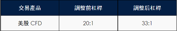 To provide you with a better trading condition, starting 28 November 2022, VT Markets will increase the leverage of US CFD Shares from 20:1 to 33:1.