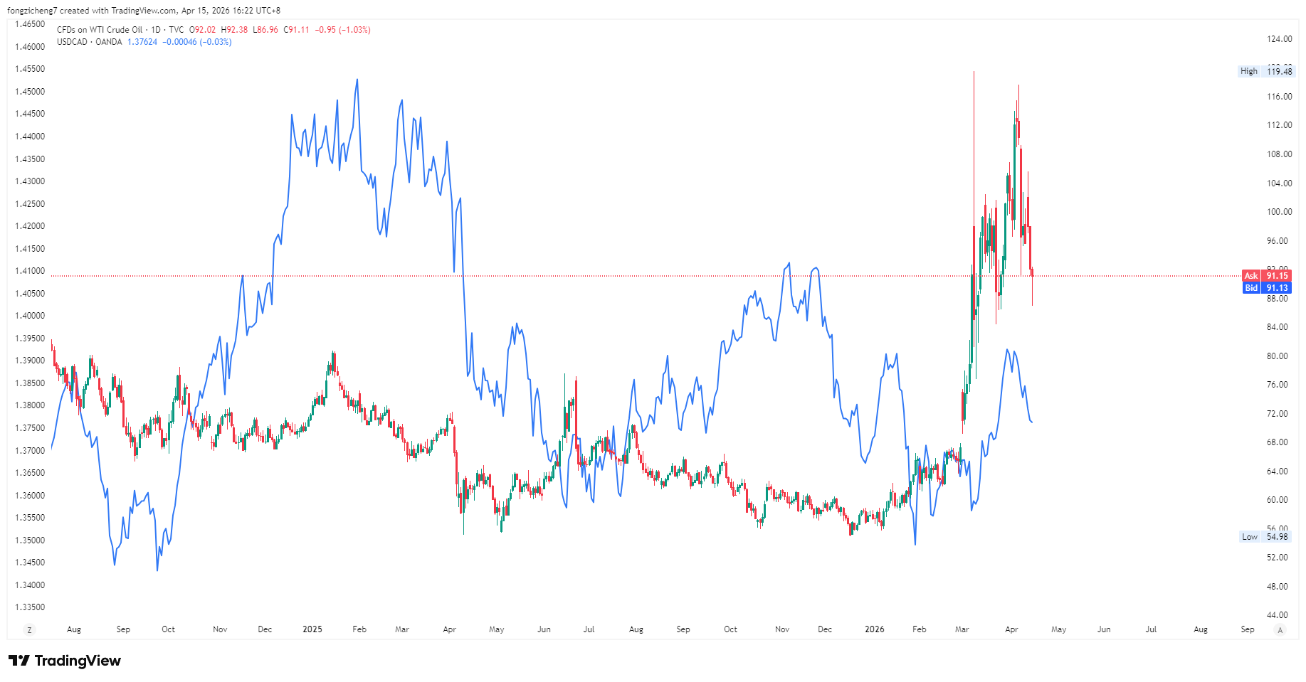 因為加拿大是主要原油出口國,油價上升通常有利加幣走強。再加上通膨可能讓美元承壓,油價上升時,USD/CAD 常下跌(表示加幣相對更強)。
