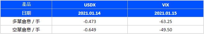 2. 由於美元指數 (USDX) 與 波動率指數 (VIX) 將由期貨合約調整為現貨合約,自下列日期起,如客戶持倉過夜,將會收取隔夜倉息費用: