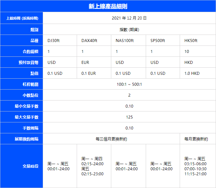 溫馨提醒:HK50ft 將於 12 月 29 日 執行上線後的首次展期。