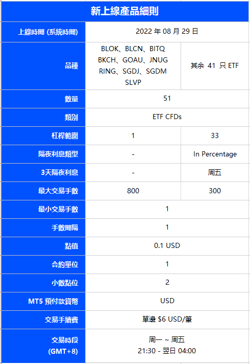 VT Markets 為進一步豐富廣大客戶的投資選擇,我們預計將於 2022 年 08 月 22 日 (周一) ,MT5 服務器上新增51只ETF產品。