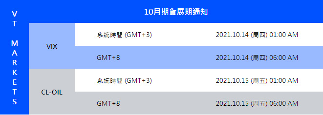 VT Markets 十月期貨合約展期通知
