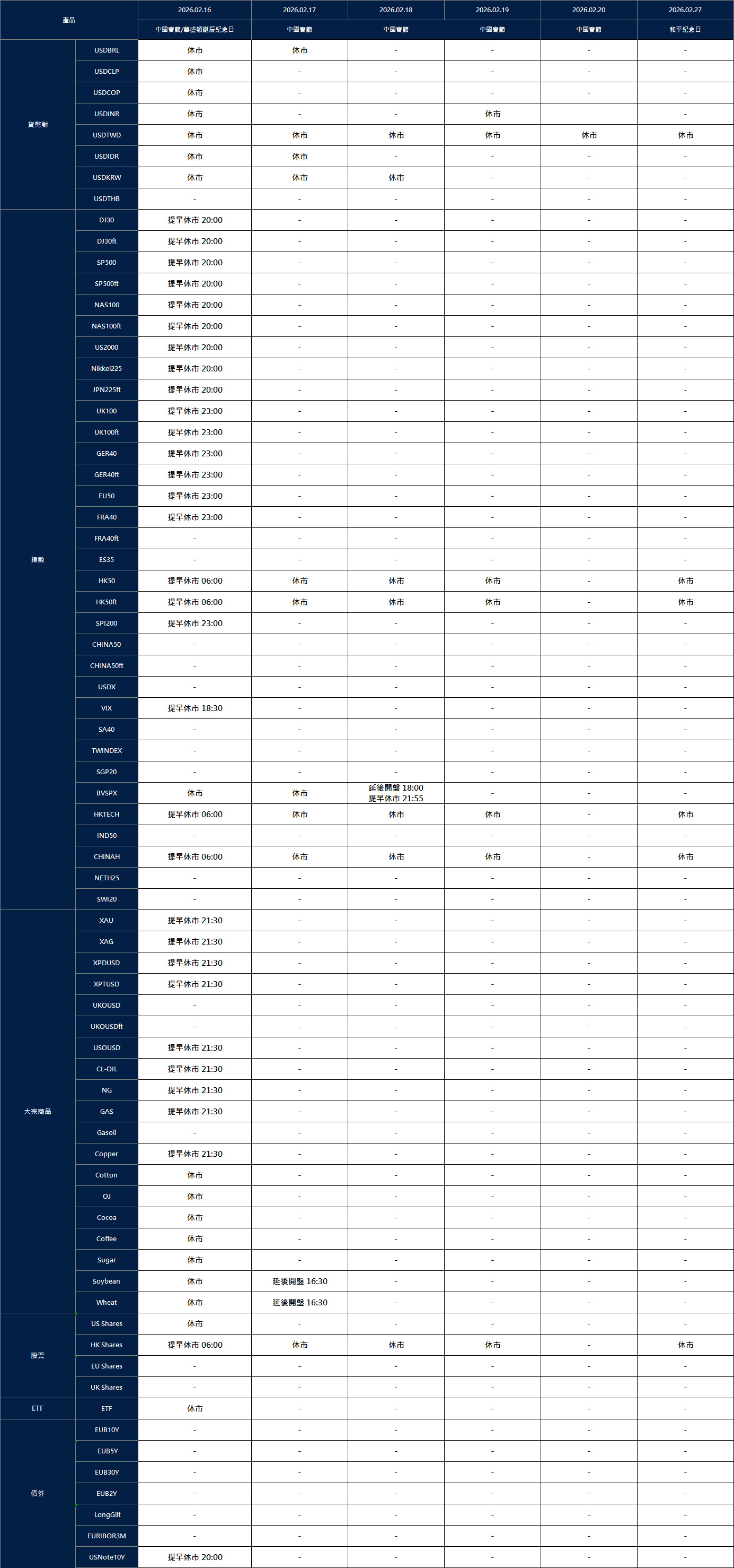 受到國際節假日影響,VT Markets 部份產品交易時間將有所調整。其余節假日受影響產品請見以下鏈接: