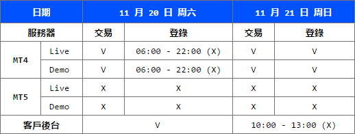 尊敬的用戶: 您好! VT Markets 致力於為客戶提供更快速且穩定的交易環境,我們將於週末進行系統升級維護。詳情如下: 上述時段採用 GMT+8。 請您務必留意下列事項: 1. 維護期間,伺服器報價將會暫停,您將無法建立新倉位、關閉或調整既有持倉。 2. 維護期間前後的市場價格可能發生跳空,在跳空範圍內的掛單或止損/止盈設置將在維護結束後的市場價格成交,建議您留意倉位控管。 3. 在維護期間,VT Markets APP 將無法使用,建議您避免在維護期間使用該應用。 4. 在維護期間,客戶後臺將無法使用,包括出入金等所有其他功能。 具體維護完畢與開盤時間請依據 …