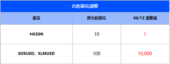 1. 本次調整除合約單位外,產品的其他所有交易細則維持不變。