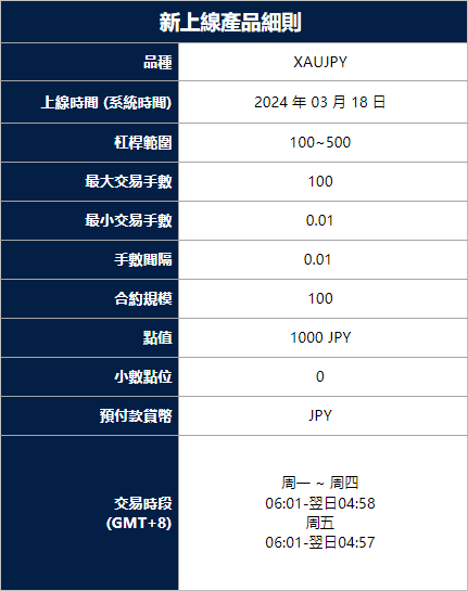 您現在可以在 MetaTrader 4、5 上交易以下新產品,交易細則如下: