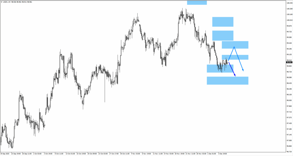 - 如果價格走高,交易者應關注99.40,以防出現新的看跌結構。