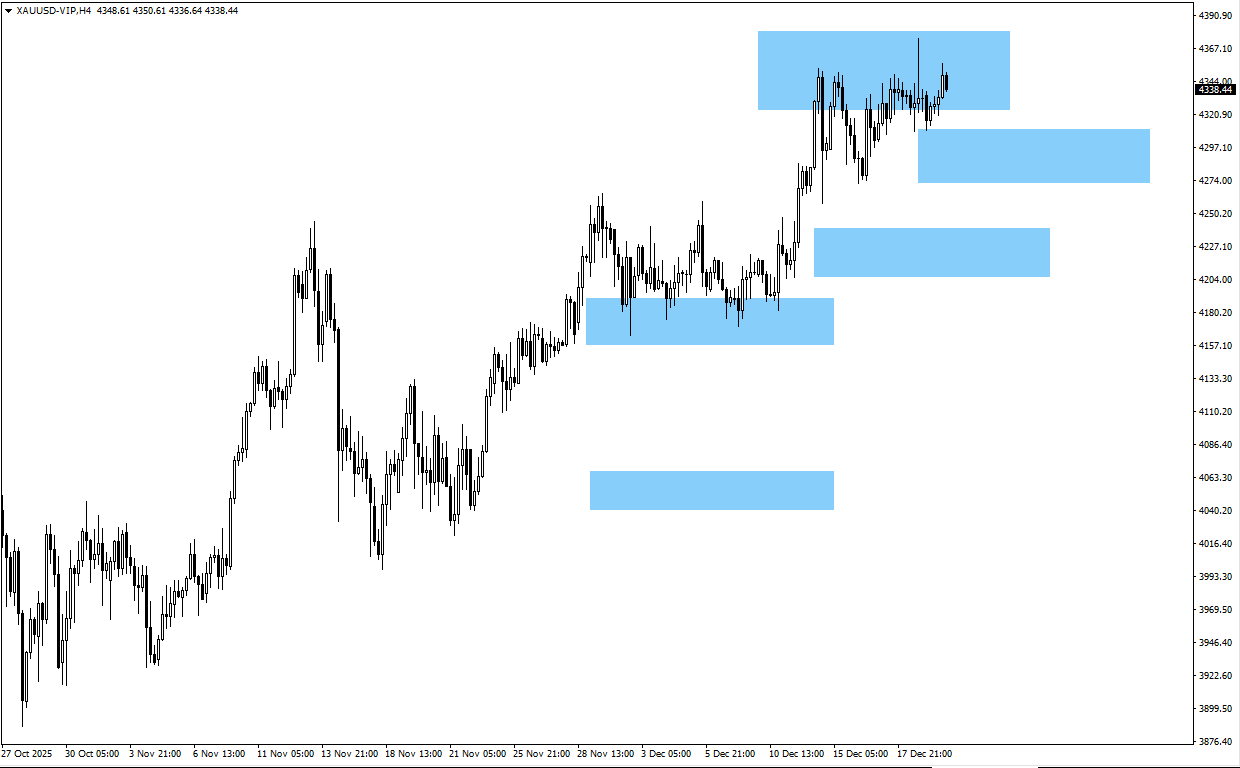 • 黃金價格從4290區域反彈,但缺乏強勁的延續性。